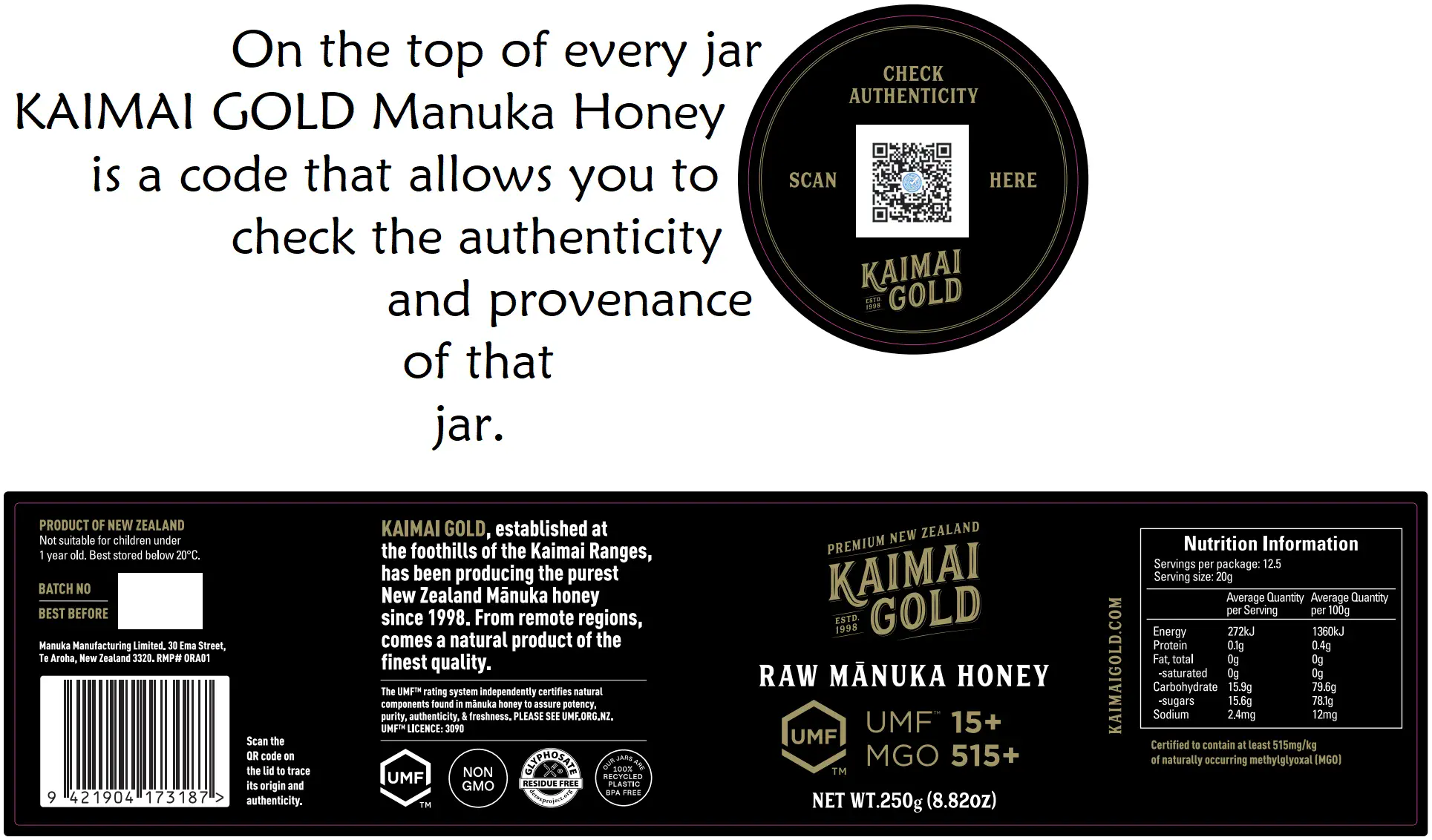MANUKA HONING UMF® 15+ (= MGO ≥ 514) / 250g MANUKA HONING / KAIMAI GOLD MANUKA HONING
